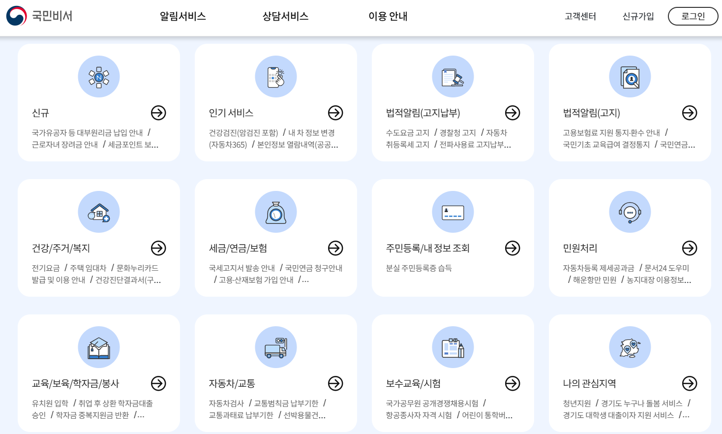 시간 날 때 한 번만 국민비서 알림 항목을 살펴보면,
